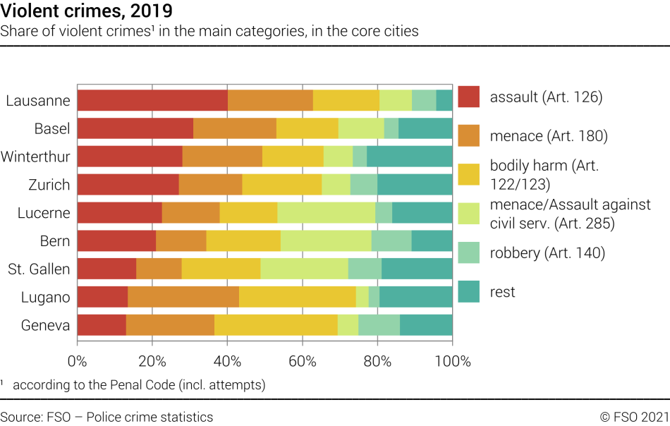 Violent crimes in selected swiss cities 2019 Diagramm Bundesamt